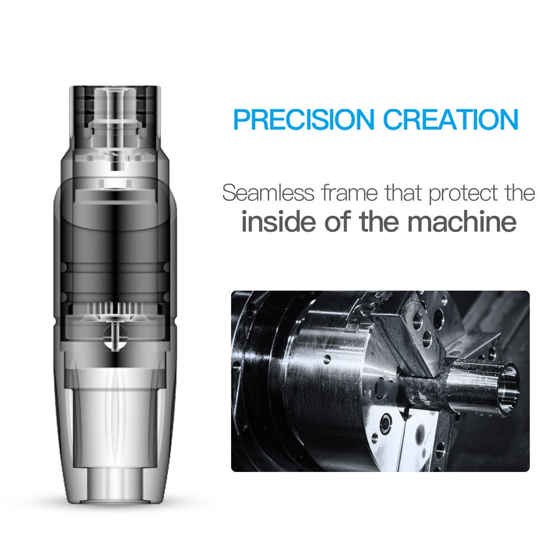 - LED light working. This tattoo machine frame part is separate from the grip. Clean the tattoo machine frame easily. And the grip is autoclavable. A seamless frame that protects the inside of the machine.