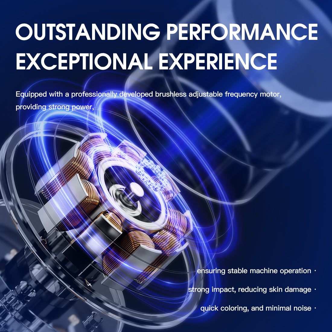 This machine is leading the trend with the new generation of wireless, adjustable frequency technology, unlocking various possibilities in tattoo art, exploring infinite creativity.