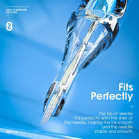 La punta de la aguja encaja perfectamente con la carcasa de la aguja, lo que hace que la tinta sea suave y la aguja estable y lisa.