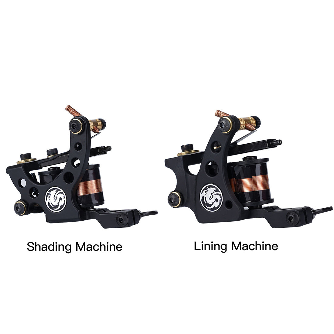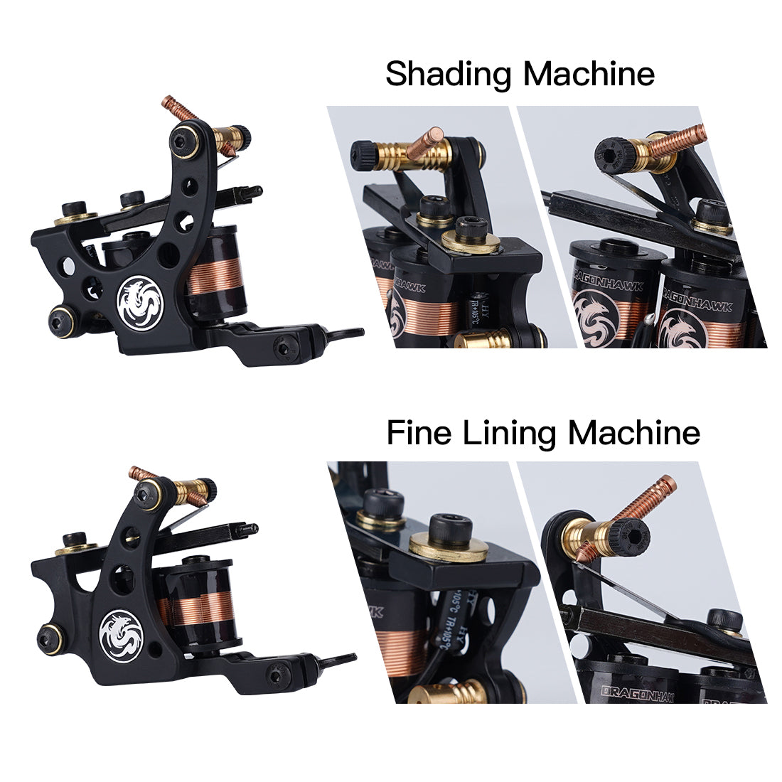 - Dos máquinas de tatuar DragonHawk para delineado y sombreado. Máquina de tatuar de hierro fundido con 10 bobinas de bobinas. Fabricada con material compuesto de alta calidad, el resorte es altamente elástico y antifatiga para un uso prolongado. Está hecha de bobinas de cobre.