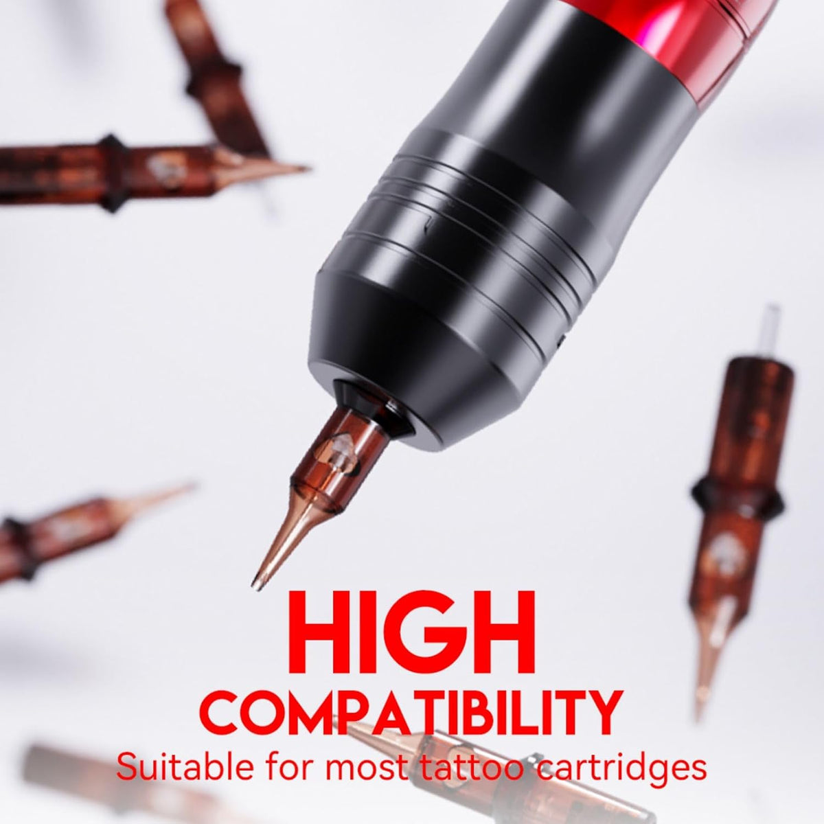 - Gemaakt van hoogwaardige materialen, is hij duurzaam en gaat hij lang mee. Het compacte ontwerp en lichte gewicht maken hem comfortabel om vast te houden en geschikt voor langdurig tatoeëren. Bovendien heeft de batterijpen een krachtige batterij die continu kan werken en een stabiel vermogen levert voor goede tatoeageresultaten.